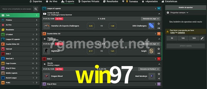 O win97 oferece uma grande seleção de opções de apostas em e-sports com probabilidades competitivas
